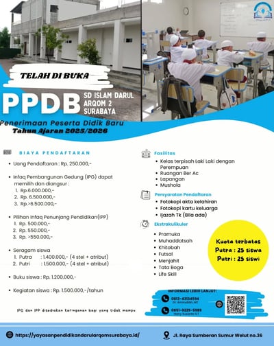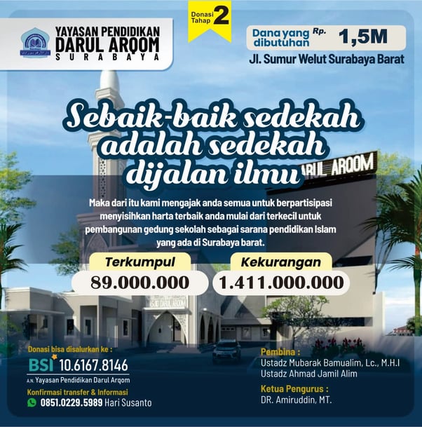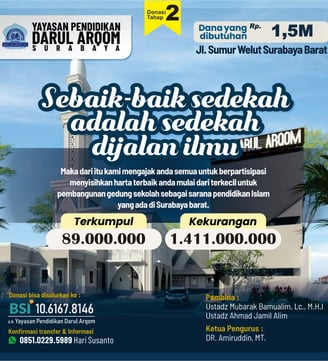 Yayasan Pendidikan Darul Arqom Surabaya kembali mengajak para muhsinin untuk ambil bagian dalam proyek pembangunan gedung sekolah tahap 2 atau bantuan pengembalian dana pinjaman yang saat ini masih terutang.